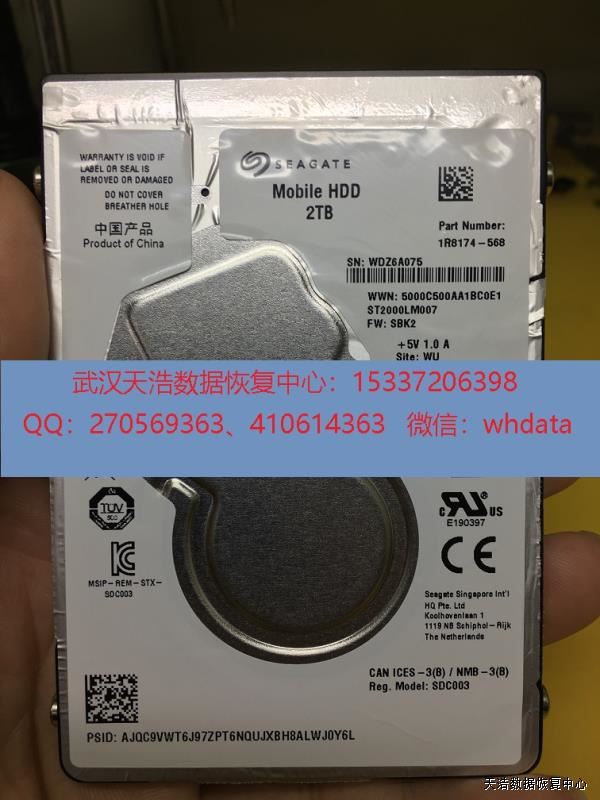 故障现象:希捷2000G原装移动硬盘,不小心掉到地上,再通电敲盘。
