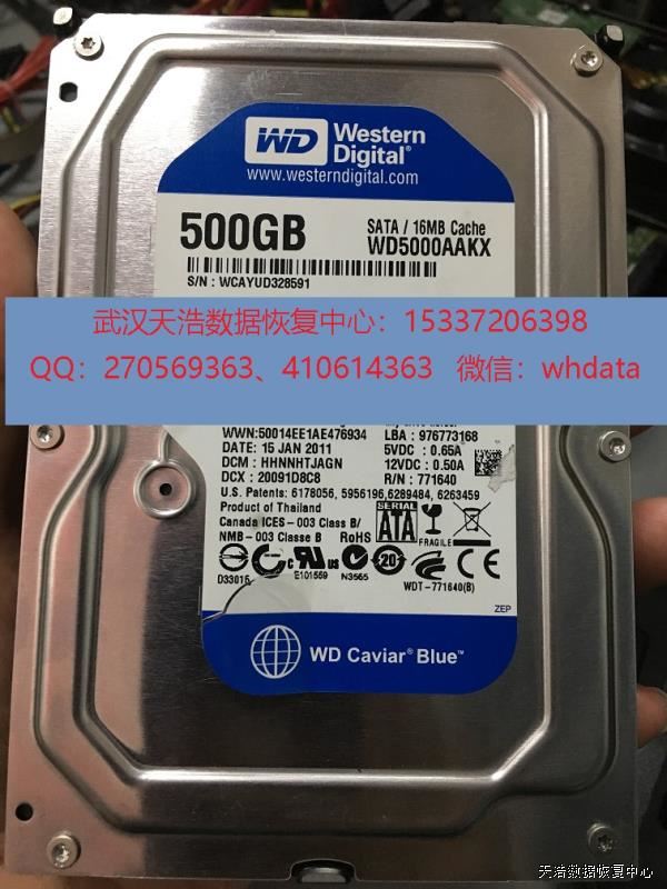 硬盘型号:WD5000AAKX-001CA0 SN:WCAYUD328591 FW:3000C 电路板号:771640-003