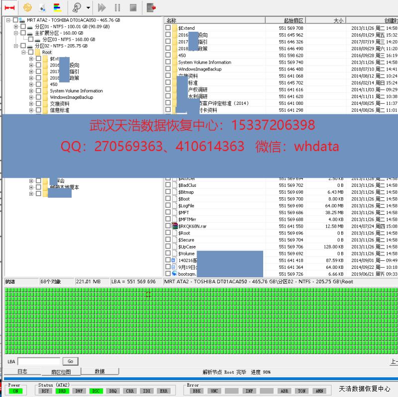 解决方案:收到硬盘后,经检测是磁头不良引起。我们在无尘环境更换兼容的磁头,再接到专业数据恢复工具上,通电硬盘正常认盘,DE镜像,成功恢复客户硬盘内几乎全部数据。