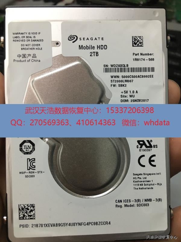 硬盘型号:ST2000LM007-1R8174 SN:WDZAXQLB FW:SBK2 电路板号:100809471