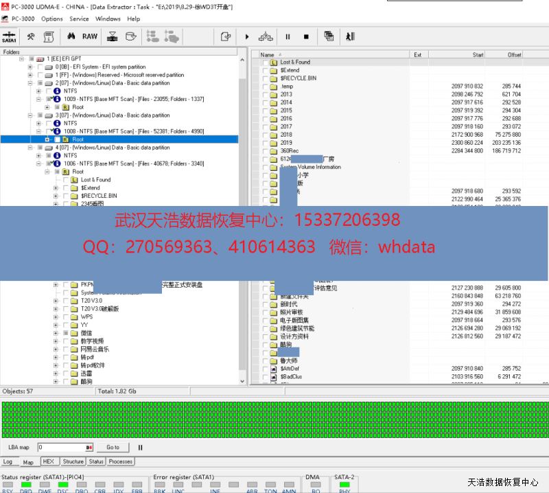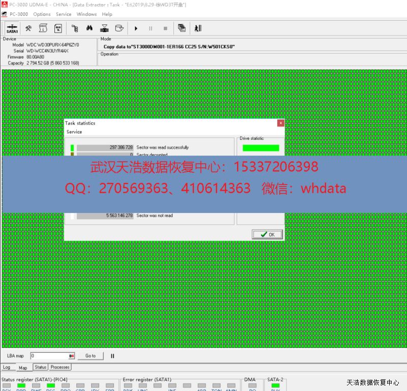 解决方案:收到硬盘后,我们在无尘环境更换兼容的磁头,再接到专业数据恢复工具上,通电硬盘正常认盘,DE镜像,成功恢复客户硬盘内几乎全部数据。