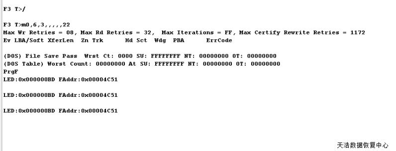 解决方案:收到硬盘后,接到数据恢复工具PC-3000 UDMA Express上,检测发现确实重建报LED,