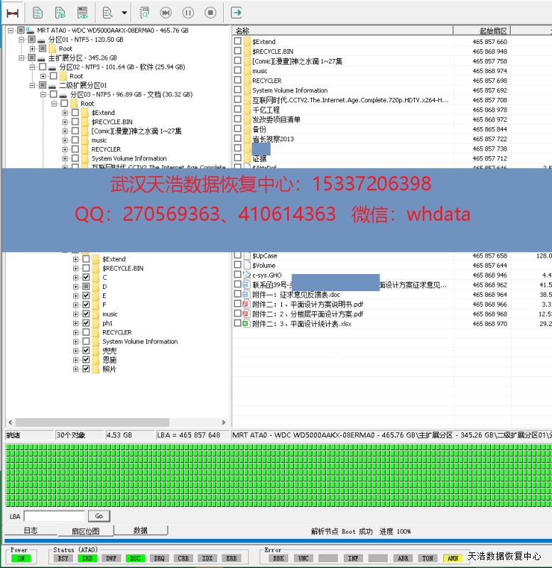 解决方案:收到硬盘后,我们在无尘环境更换兼容的磁头,再接到专业数据恢复工具上,通电硬盘正常认盘,DE镜像,成功恢复客户硬盘内几乎全部数据。