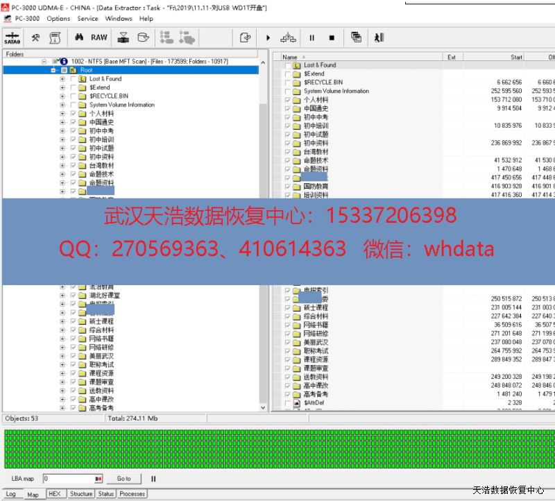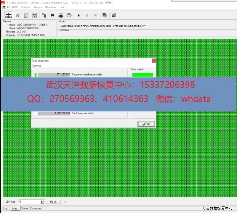 解决方案:收到硬盘后,我们在无尘环境更换兼容的磁头,再接到专业数据恢复工具PC3000 UDMA上,通电硬盘正常认盘,DE镜像,成功恢复客户硬盘内几乎全部数据。