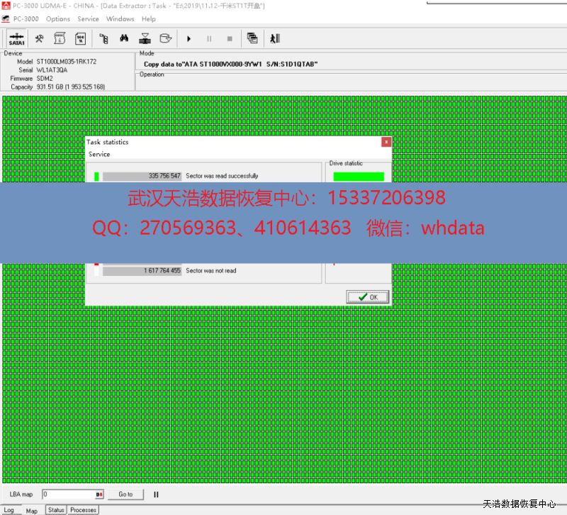 解决方案:收到硬盘后,我们在无尘柜内更换兼容的磁头,再接到数据恢复工具PC-3000 UDMA Express上,硬盘正常认盘,镜像,成功恢复硬盘内几乎全部数据!