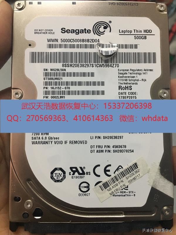 硬盘型号:ST500LM021-1KJ152 SN:W628L5VA FW:0002LIM1 电路板号:100729420