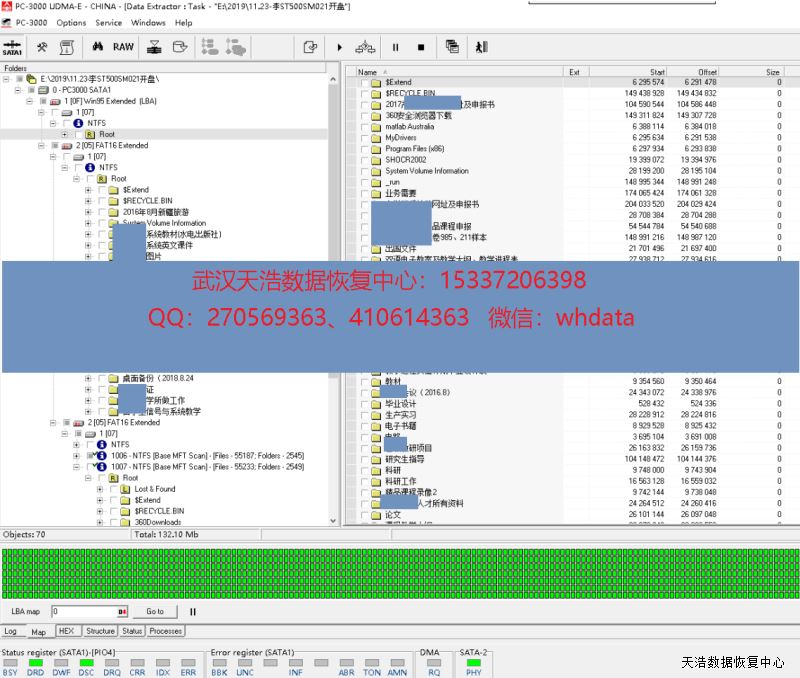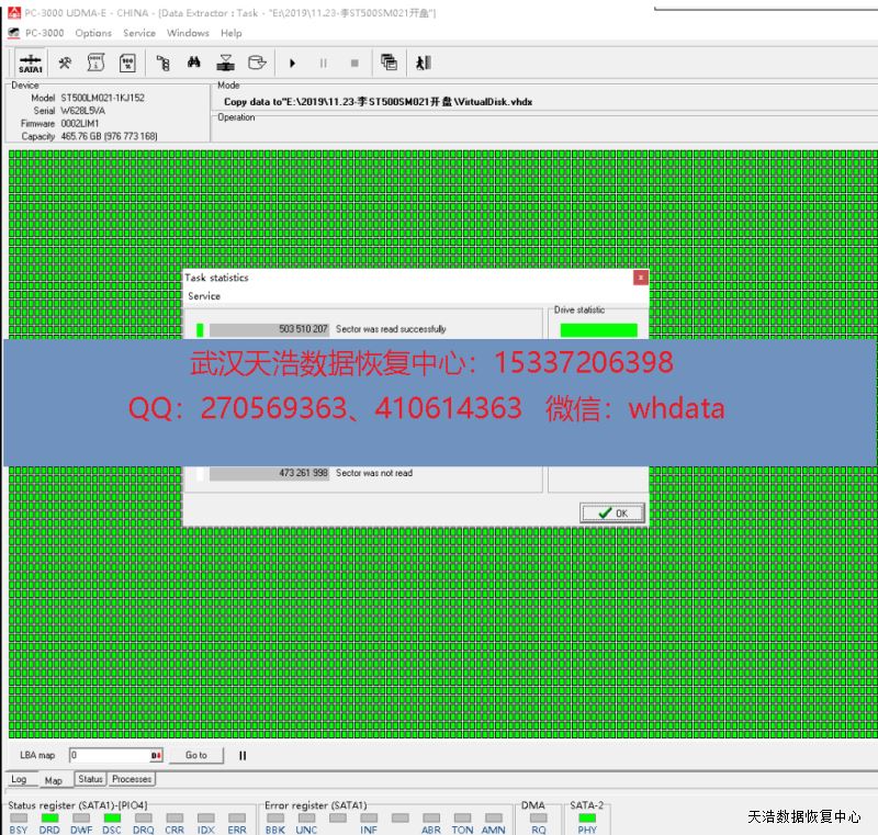故障现象:客户笔记本突然不能进系统,里面是希捷500G超薄硬盘,客户通过USB硬盘盒接到另一台电脑,能看到数据,但拷了2天,才拷了一点点,拔掉硬盘,再插上,硬盘不能识别了!
