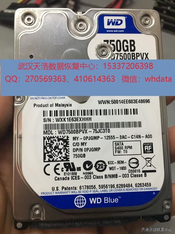 硬盘型号:WD7500BPVX-75JC3T0 SN:WXK1E63EXHHH FW:16000T 电路板号:771960-000