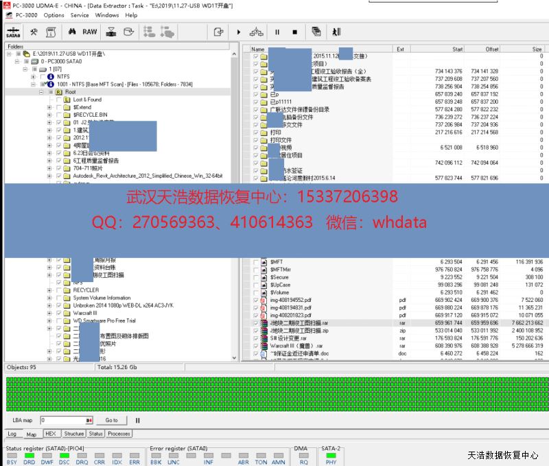 解决方案:收到硬盘后,我们在无尘环境更换兼容的磁头,再接到专业数据恢复工具PC3000 UDMA上,通电硬盘正常认盘,DE镜像,成功恢复客户硬盘内几乎全部数据。