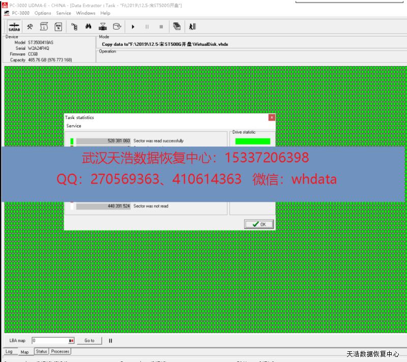 解决方案:收到硬盘后,我们在无尘柜内拆开检测,发现盘片内圈划伤,做限位处理后,更换兼容的磁头,再接到专业的数据恢复工具PC3000 UDMA EXPRESS上,通电硬盘正常认盘,镜像,成功恢复硬盘内几乎全部数据!