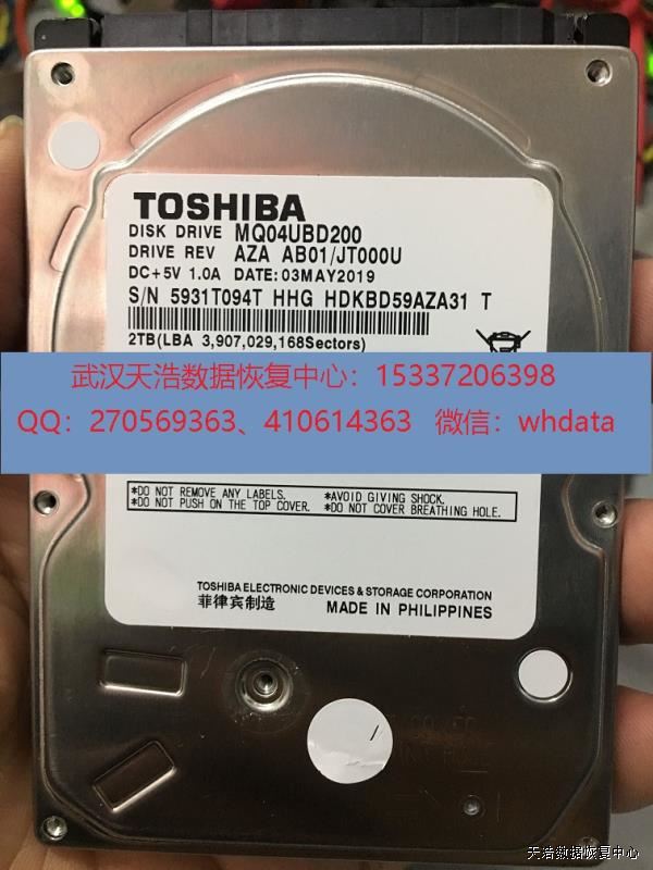 故障现象:东芝2T原装移动硬盘,通电敲盘。