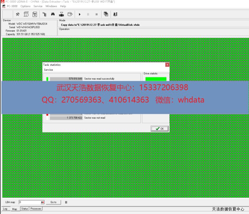 解决方案:收到硬盘后,我们在无尘环境更换兼容的磁头,再接到专业数据恢复工具PC3000 UDMA上,通电硬盘正常认盘,DE镜像,成功恢复客户硬盘内几乎全部数据。