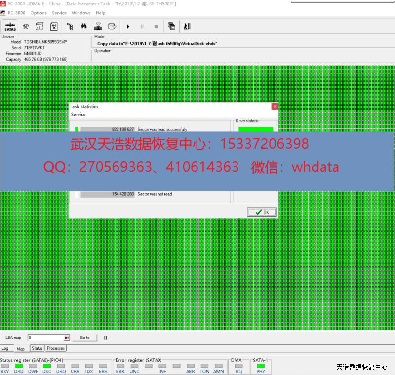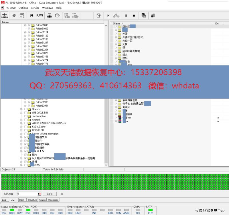 解决方案:这种情况一般是硬盘有坏道引起,收到硬盘后,我们接到数据恢复工具上,通电认盘,DE镜像,成功恢复客户硬盘里面的绝大部分数据,包含客户及家人多年的照片资料。