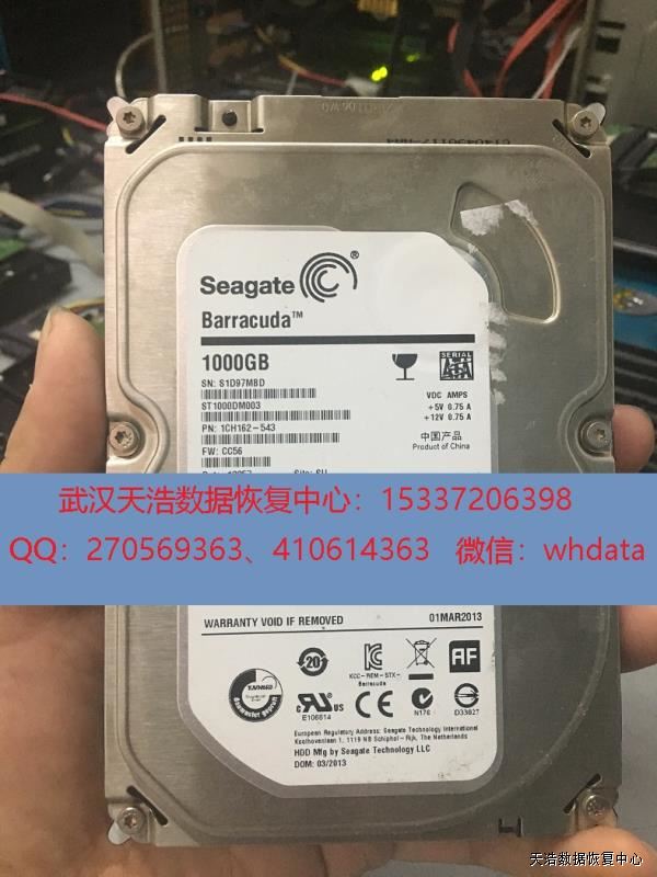 硬盘型号:ST1000DM003-1CH162 SN:S1D97MBD FW:CC56 电路板号:100687658