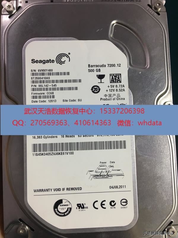 硬盘型号:ST3500418AS SN:6VMXY480 FW:CC6B 电路板号:100535704