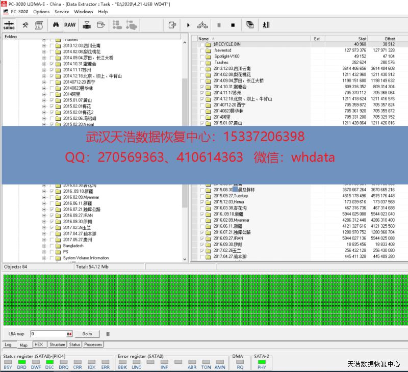 解决方案:收到硬盘后,我们更换兼容的SATA电路板,再接到专业数据恢复工具PC3000 UDMA EXPRESS上,通电检测修复固件,硬盘正常认盘,DE镜像,成功恢复客户硬盘内多年各地旅游的2T的照片、视频资料。