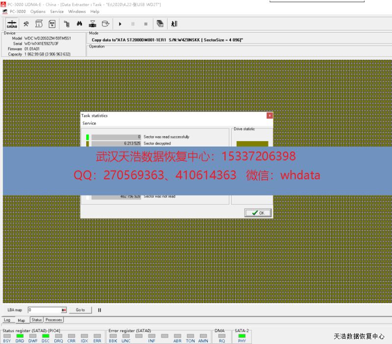 解决方案:收到硬盘后,我们更换兼容的无锁SATA电路板,再接到专业数据恢复工具PC3000 UDMA EXPRESS上,通电检测修复固件,硬盘正常认盘,DE解密镜像,成功恢复客户硬盘内全部数据。