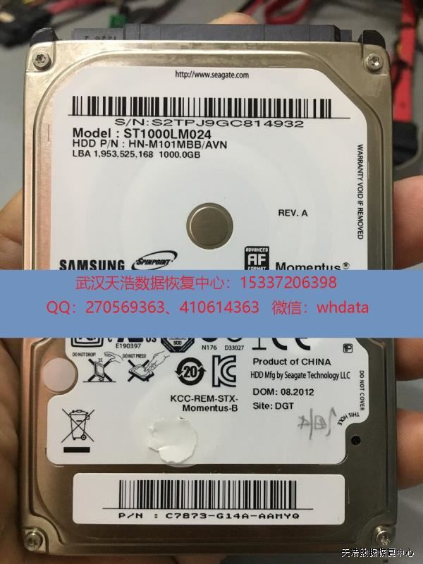 故障现象:希捷原装1T移动硬盘,拆开里面是一个三星1T的硬盘盘体,通电异响,磁头损坏。