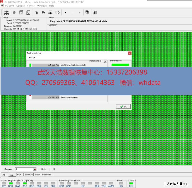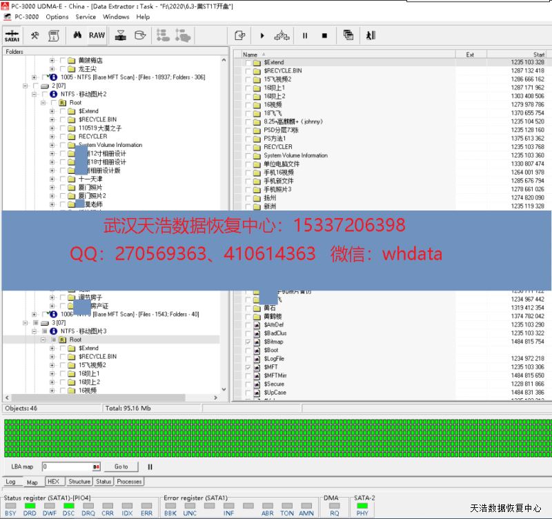 解决方案:收到硬盘后,我们在无尘环境更换兼容的磁头,再接到专业数据恢复工具PC-3000 UDMA Express上,通电硬盘正常认盘,DE分头镜像,成功恢复硬盘内几乎全部的视频和照片数据!