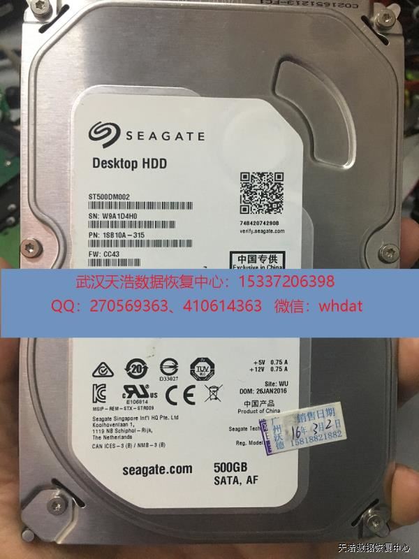 硬盘型号:ST500DM002-1SB10A SN:CC43 FW:W9A1D4H0 电路板:100774000