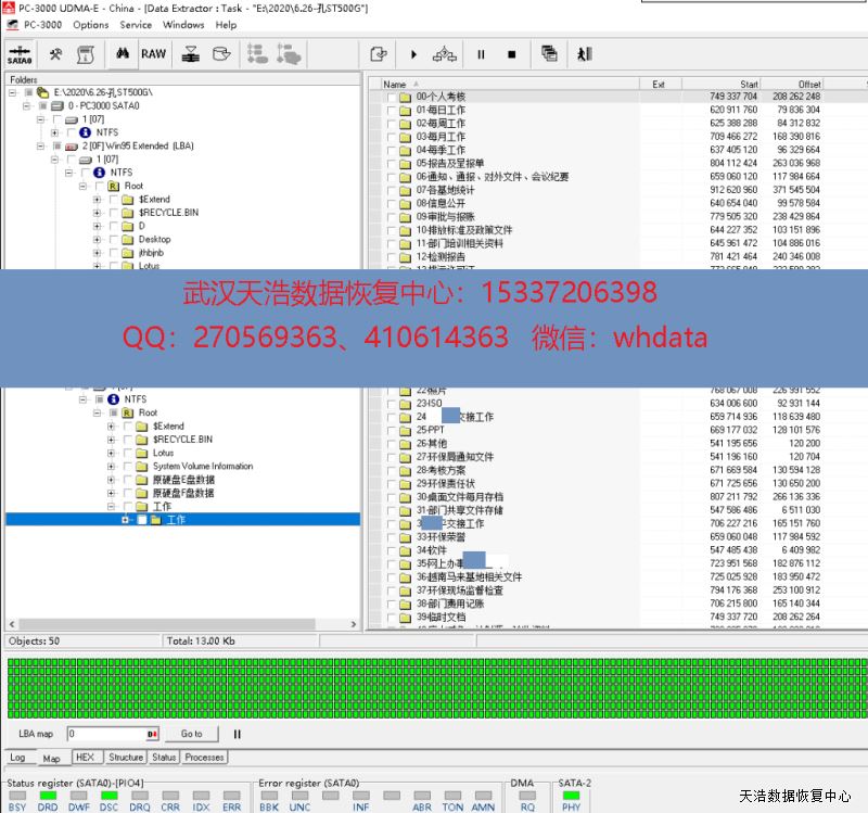 热交换之后,处理固件问题,断电通电,硬盘正常认盘,DE镜像,完美恢复出硬盘内几乎全部数据!