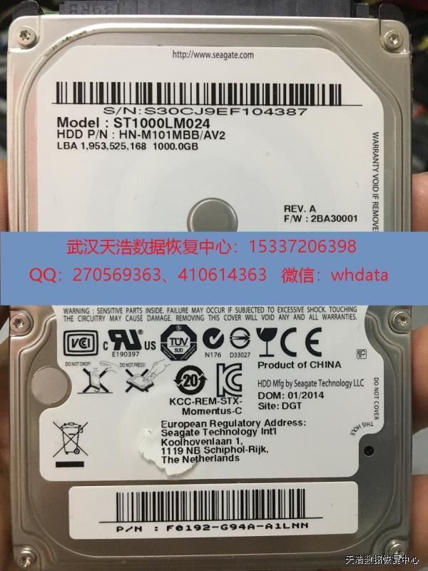 硬盘型号:ST1000LM024 HN-M101MBB SN:S30CJ9EF104387 FW:2BA30001