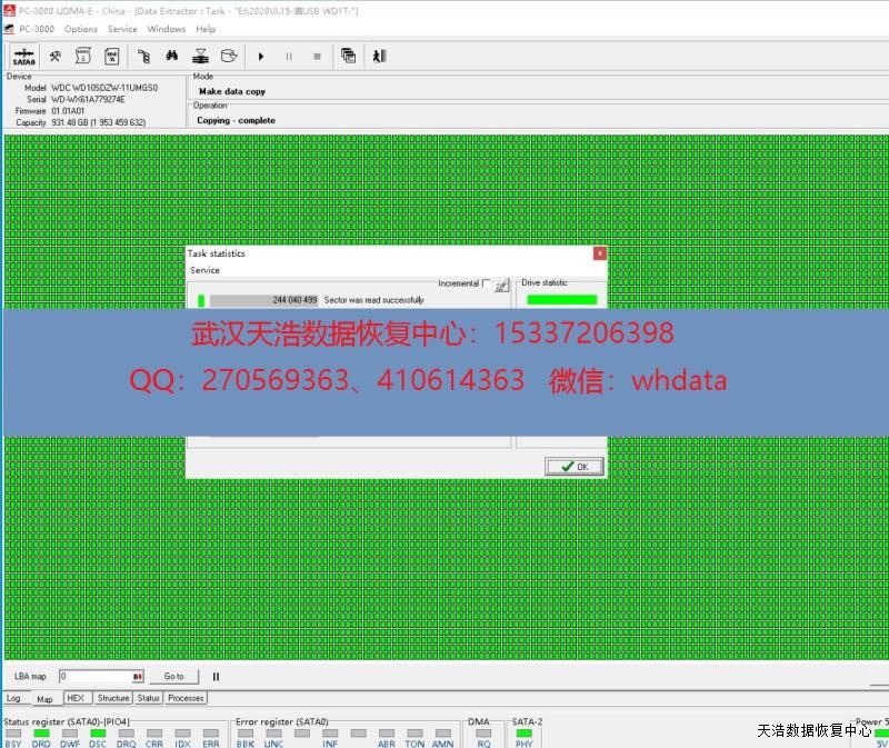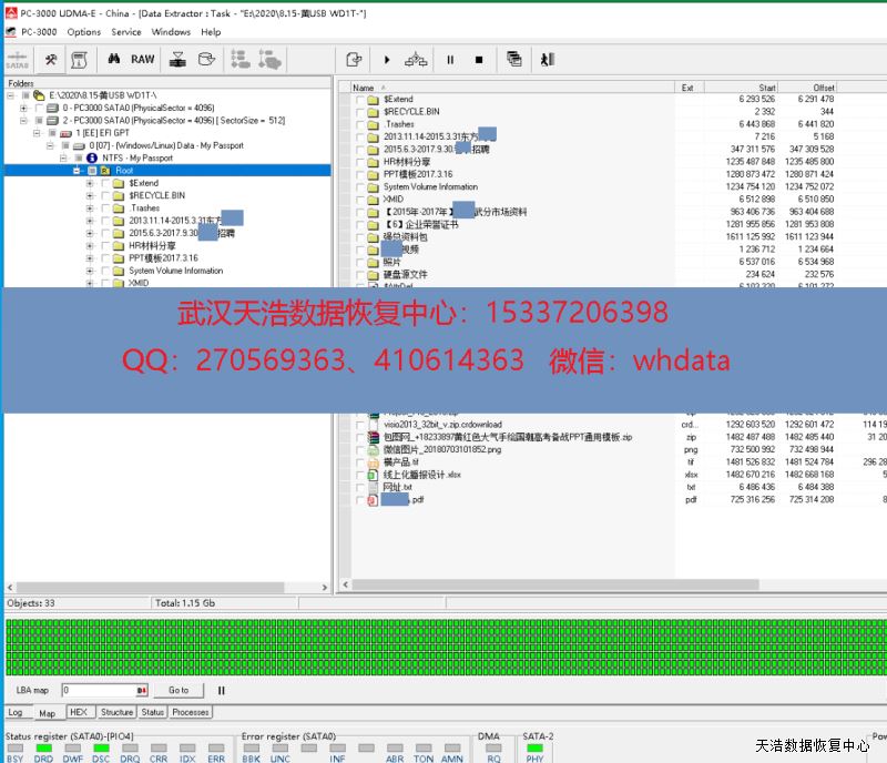 解决方案:收到硬盘后,我们在无尘环境拆开硬盘,更换兼容的磁头,再接到专业数据恢复工具PC3000 UDMA EXPRESS上,通电硬盘正常认盘,DE镜像,成功恢复硬盘内大部分数据。