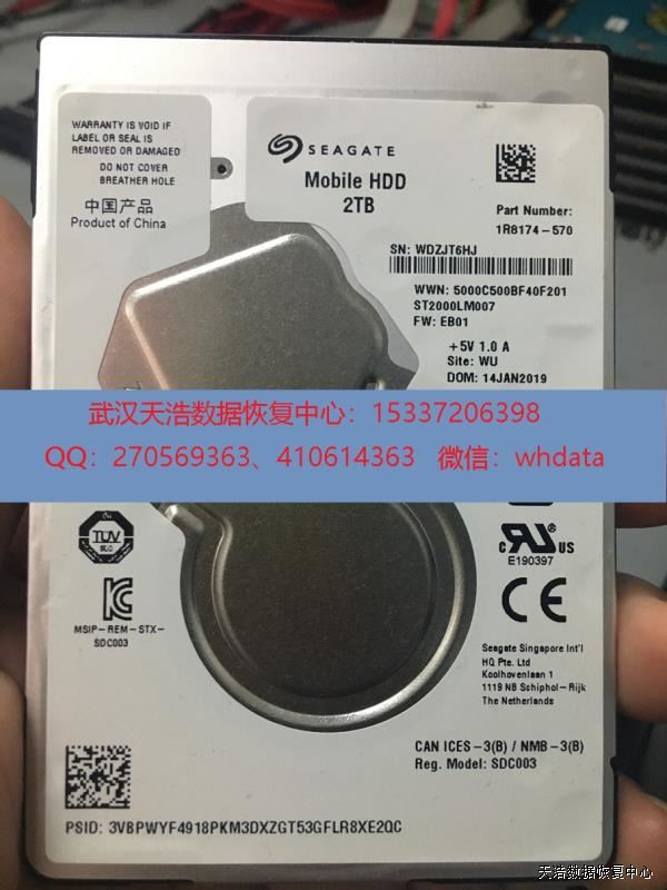 硬盘型号:ST2000LM007-1R8174 SN:WDZJT6HJ FW:EB01 电路板号:100809471