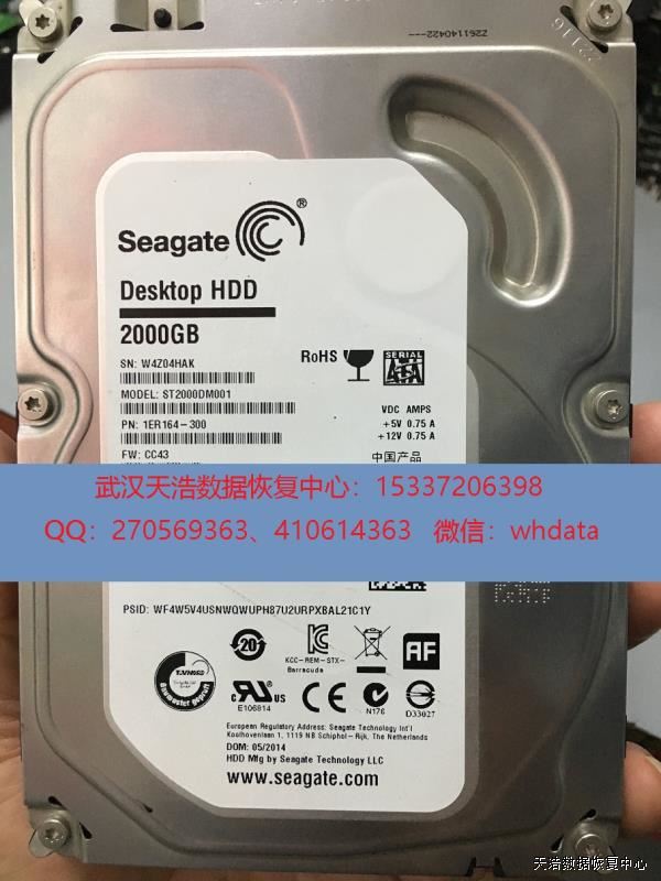 硬盘型号:ST2000DM001-1ER164 SN:W4Z04HAK FW:CC43 电路板号:100724095