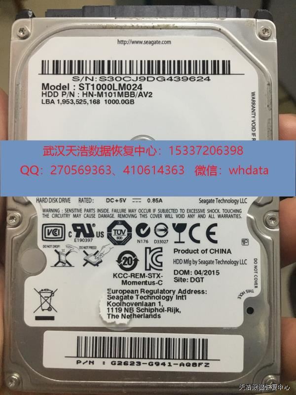 硬盘型号:ST1000LM024 HN-M101MBB SN:S30CJ9DG439624 FW:2BA30003