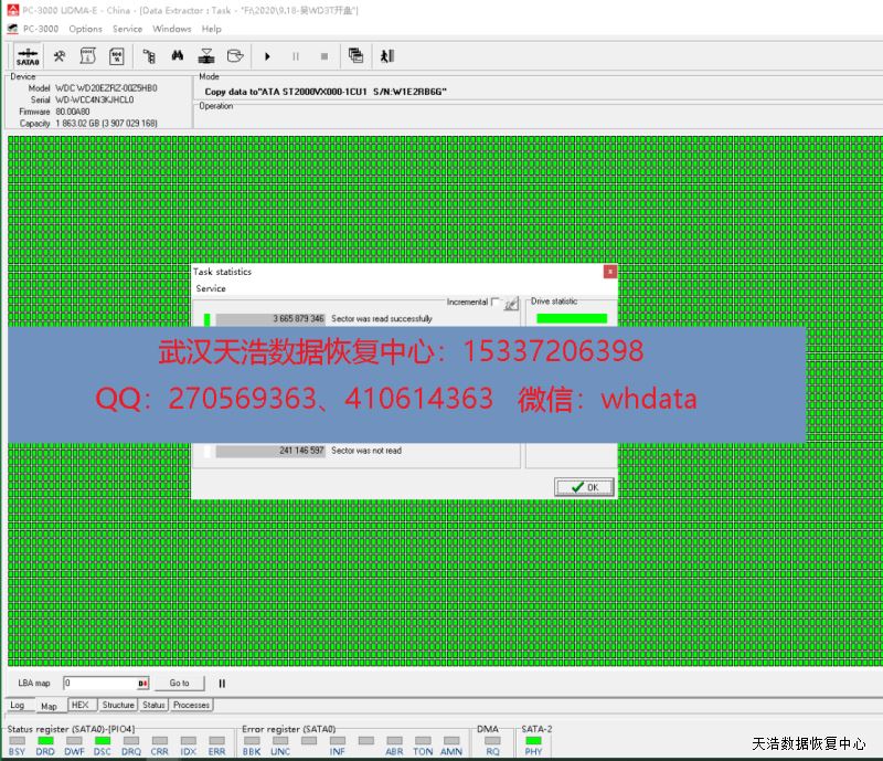 解决方案:收到硬盘后,我们在无尘环境更换兼容的磁头,再接到专业数据恢复工具上,通电硬盘正常认盘,DE镜像,成功恢复客户公司硬盘内几乎全部数据!