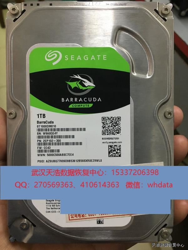 硬盘型号:ST1000DM010-2EP102 SN:W9A8QE4Y FW:CC43 电路板号:100774000