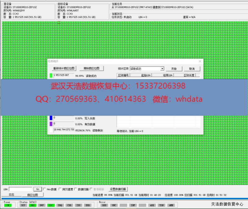 这是现在希捷新一点硬盘的常见故障,我们通过希捷热交换技术,处理修复固件问题后,再断电通电硬盘正常认盘,镜像,成功恢复硬盘内几乎全部数据!