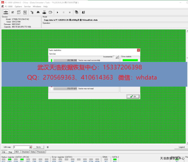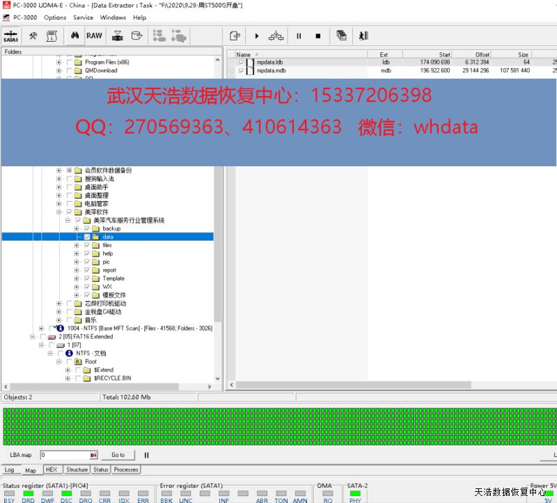 解决方案:收到硬盘后,我们在无尘柜内拆开,更换兼容的磁头,再接到专业的数据恢复工具PC3000 UDMA EXPRESS上,通电硬盘正常认盘,DE镜像,成功恢复硬盘内客户公司的重要数据!包含客户硬盘内的汽车服务行业管理系统的数据,经验证,也完全正常!