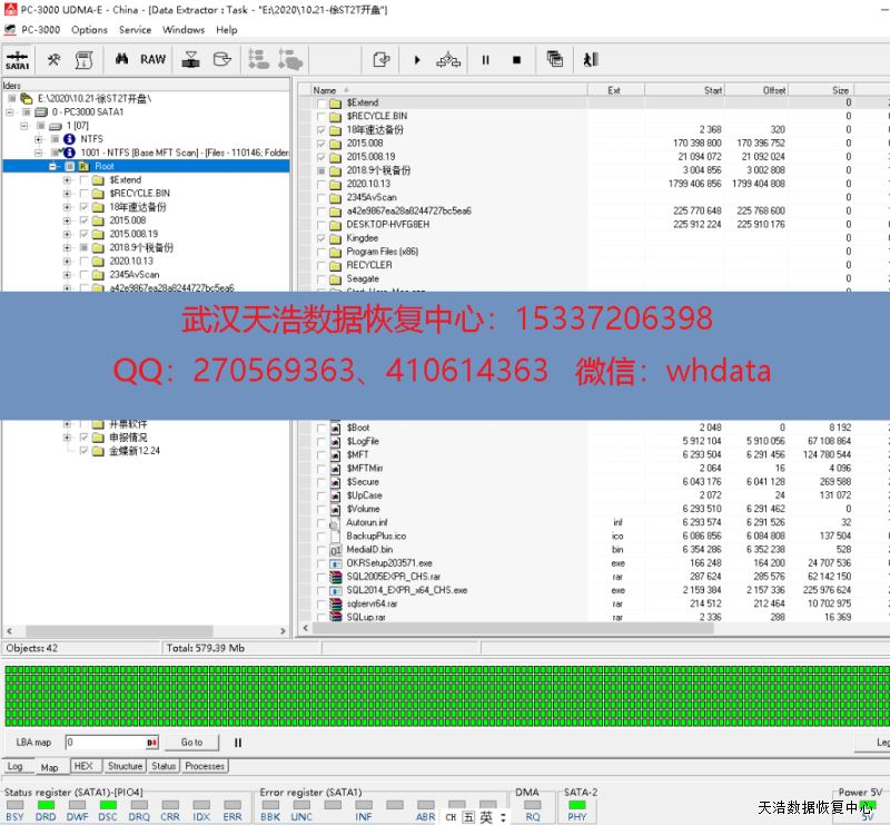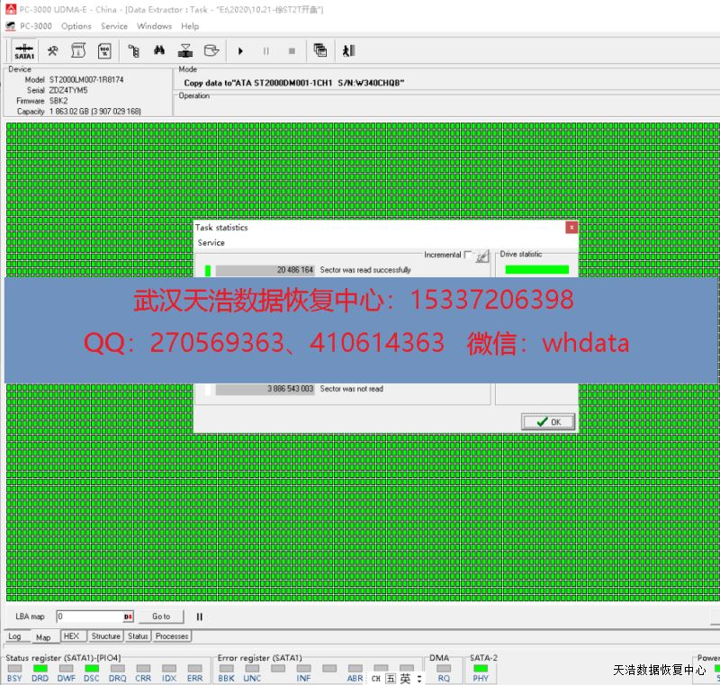 解决方案:收到硬盘后,我们在无尘环境更换兼容的磁头,再接到数据恢复工具PC-3000 UDMA Express上,通电,硬盘正常认盘,镜像,成功恢复硬盘内多套财务数据!