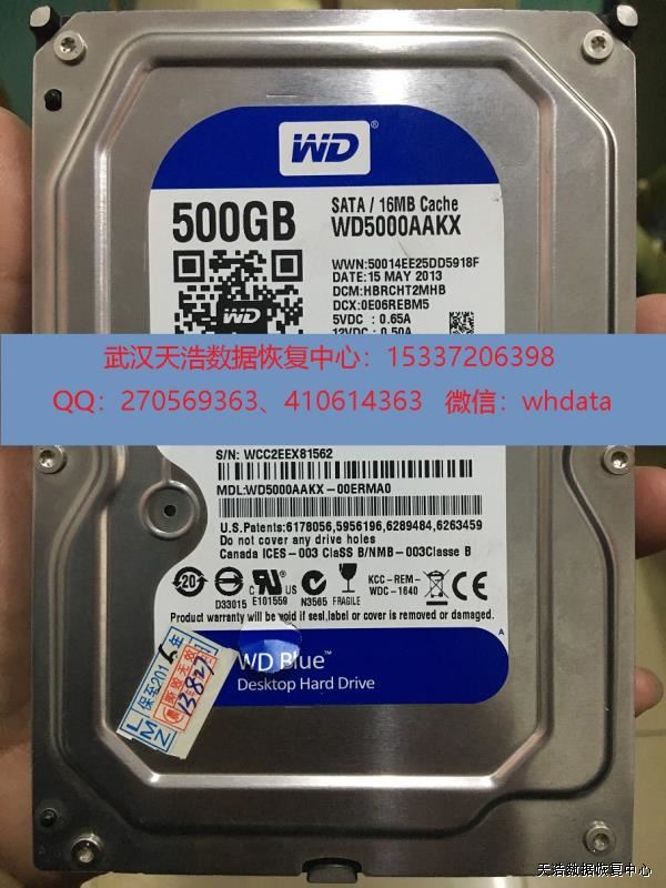 硬盘型号:WD5000AAKX-00ERMA0 SN:WCC2EEX81562 FW:5000K 电路板号:771640-003