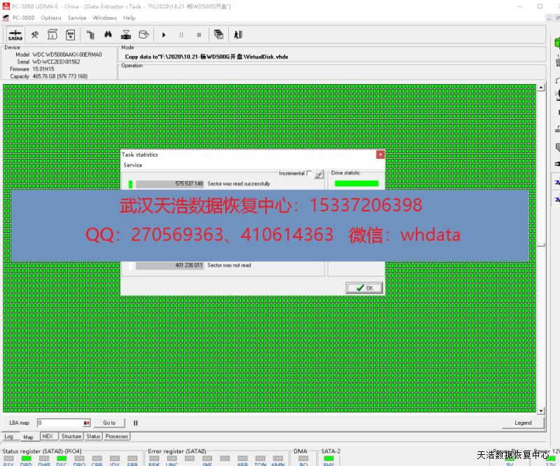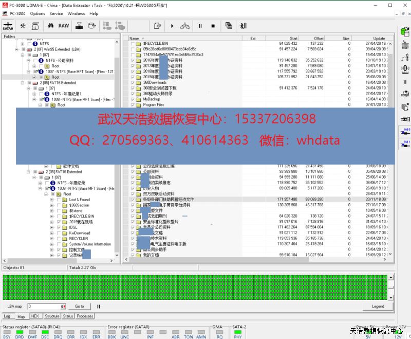 解决方案:收到硬盘后,我们在无尘环境更换兼容的磁头,再接到专业数据恢复工具上,通电正常认盘,DE镜像,成功恢复客户硬盘内大部分数据。