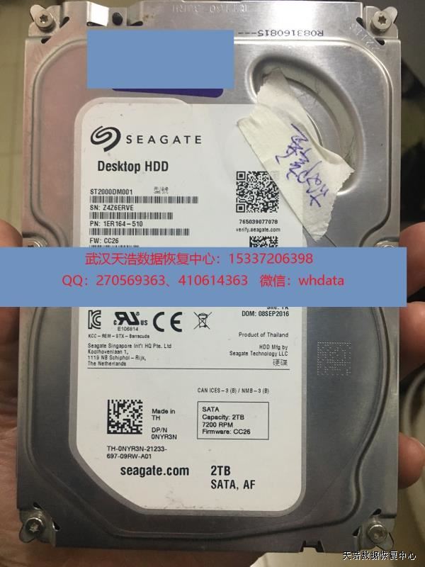 硬盘型号:ST2000DM001-1ER164 SN:Z4Z6ERVE FW:CC26 电路板号:100724095