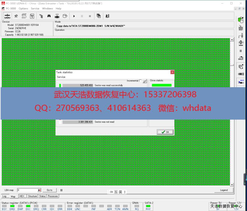 解决方案:收到硬盘后,接到数据恢复工具PC-3000 UDMA Express上,通电,读出原始ROM,再通过希捷F3热交换技术处理后,DE镜像,成功恢复客户硬盘另外3个面的照片数据(影楼客户)。