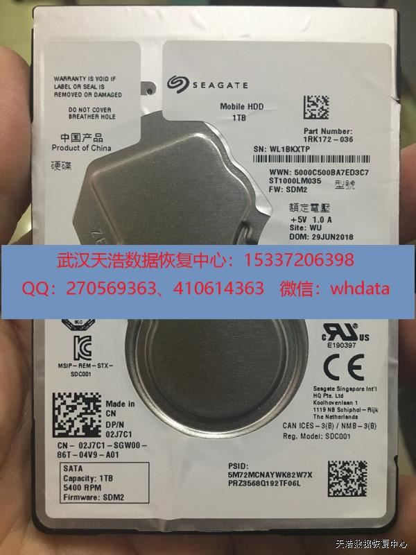 硬盘型号:ST1000LM035-1RK172 SN:WL1BKXTP FW:SDM2 电路板号:100809471