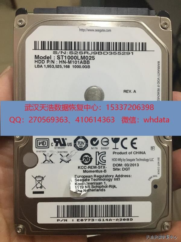 硬盘型号:ST1000LM025 HN-M101ABB SN:S2SRJ9BD355291 FW:2AR10001