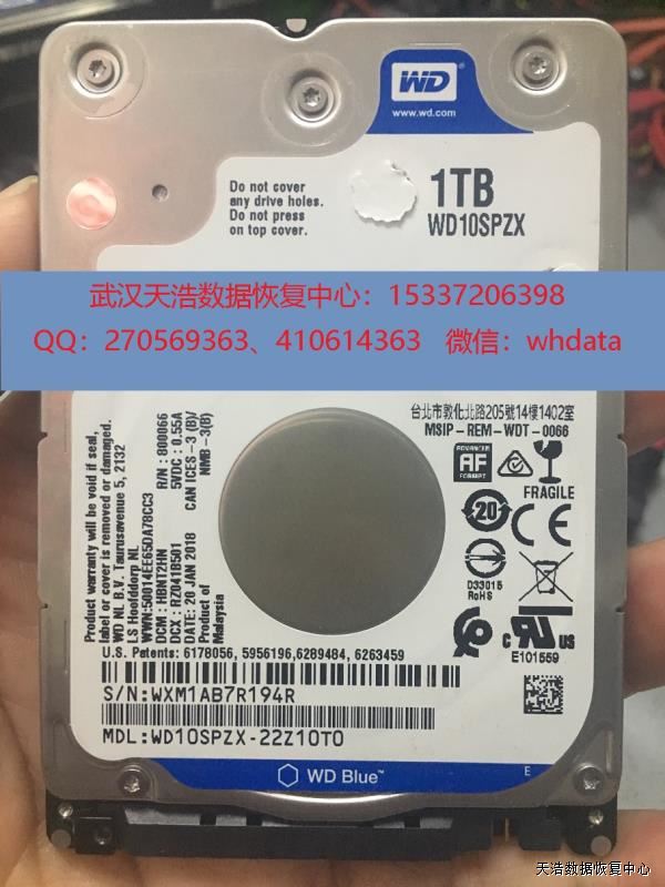 硬盘型号:WD10SPZX-22Z10T0 SN:WXM1AB7R194R FW:12000T 电路板号:800069-001