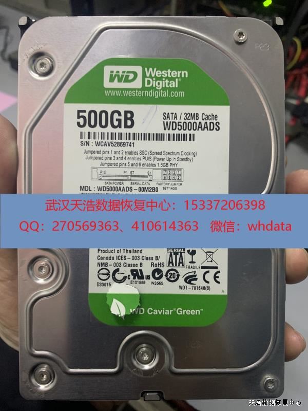 硬盘型号:WD5000AADS-00M2B0 SN:WCAV52869741 FW:90002A 电路板号:771640-000