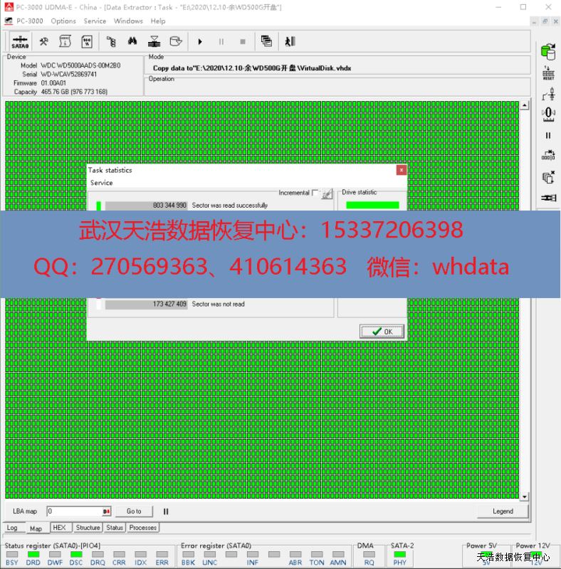 故障现象:西数500G台式机重盘,客户描述不读盘,客户公司所有的资料都在这个硬盘,且没有备份!