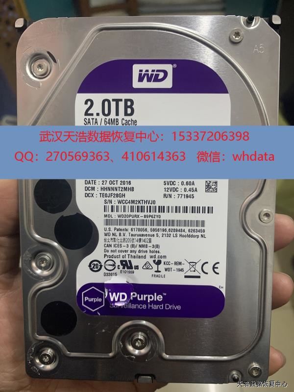 硬盘型号:WD20PURX-89P6ZY0 SN:WCC4M2KTHVJ0 FW:15000B 电路板号:771945-002