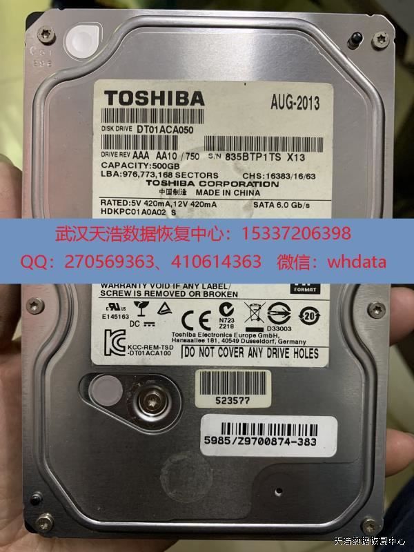 硬盘型号:TOSHIBA DT01ACA050 SN:835BTP1TS FW:MS1OA750 电路板号:PF00035