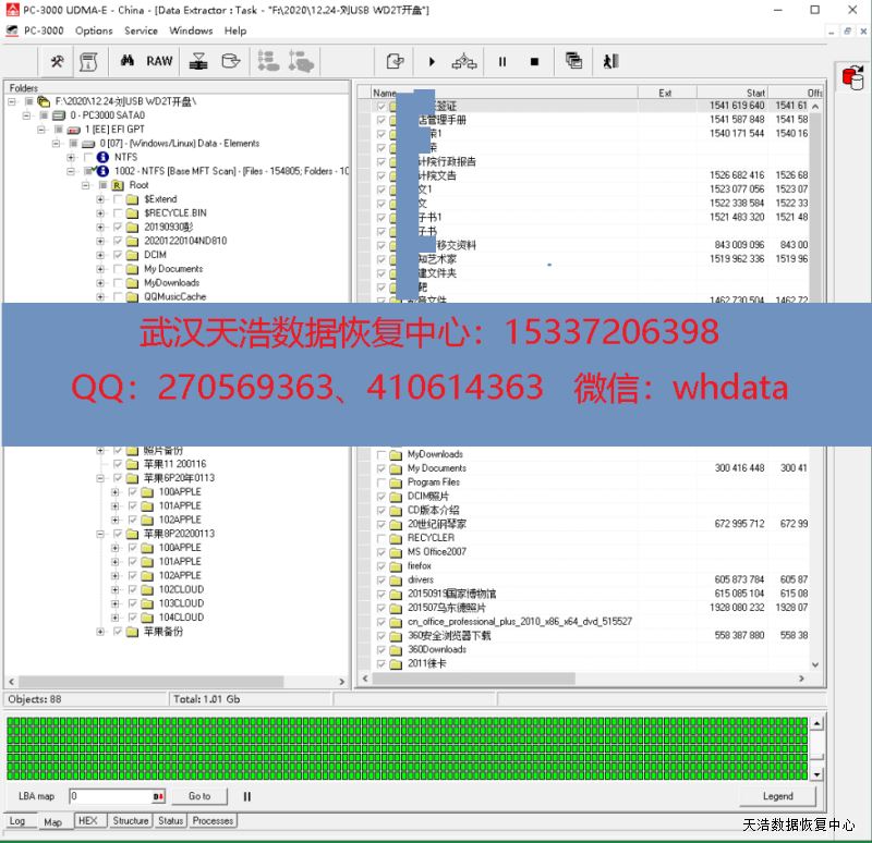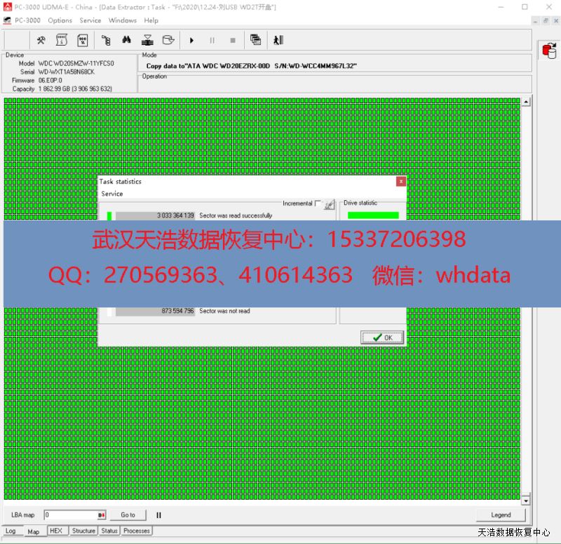 解决方案:收到硬盘后,我们在无尘环境更换兼容磁头,更换兼容的SATA无锁电路板,接到专业数据恢复工具PC3000 UDMA EXPRESS上,通电硬盘正常认盘,DE镜像,成功恢复客户硬盘内几乎全部数据!