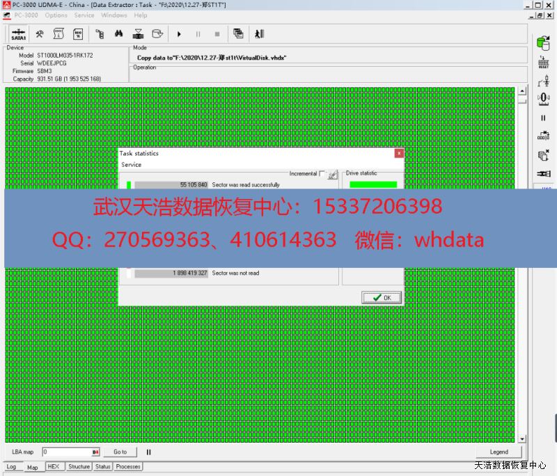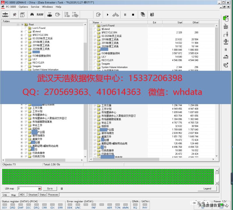 这是这种硬盘常见的固件问题,修复固件后,硬盘正常认盘,数据区也能正常访问。DE分头镜像,成功恢复硬盘内几乎全部数据!
