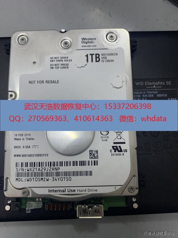 故障现象:WD 1T超薄原装移动硬盘,摔过,通电敲盘。