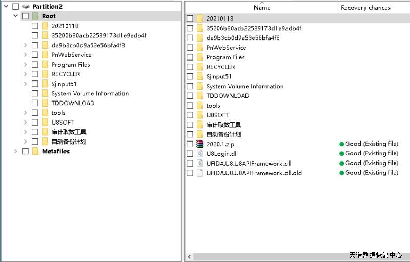解决方案:我们收盘后,检测发现,1块固件有问题,另一块有坏道,我们使用专业工具修复硬盘固件问题,然后对每个硬盘做全盘物理镜像,镜像完再对镜像进行分析,得出RAID原始参数,重组RAID5,剔除先掉线的盘,数据完美恢复,经客户验证用友数据库也全都Ok!